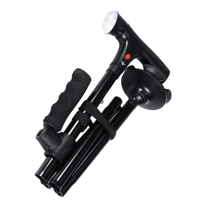 The collapsible cane provides assistance to the elderly and people who can't walk easily. It has an aluminum body, comfortable hand grip, and a sturdy rubber base make it the perfect walking and support companion.