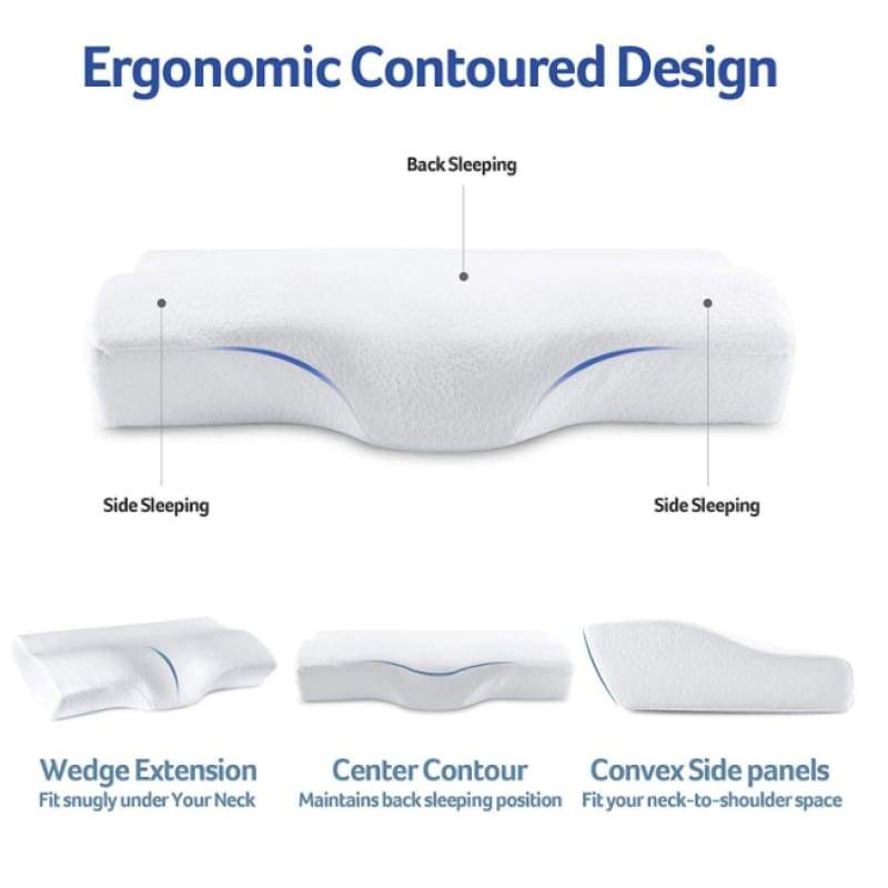 - The Ergonomically contoured design keeps your neck, and spine in ideal alignment while sleeping