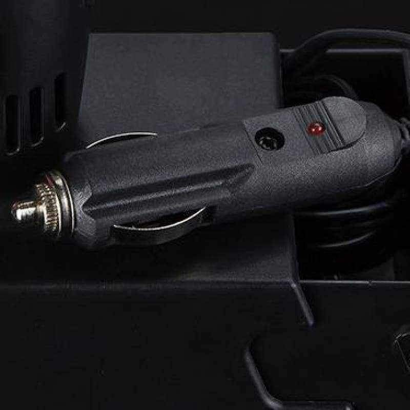 - Connect the power cord into the inflator pump jack, and then the other end into the car cigarette lighter jack.