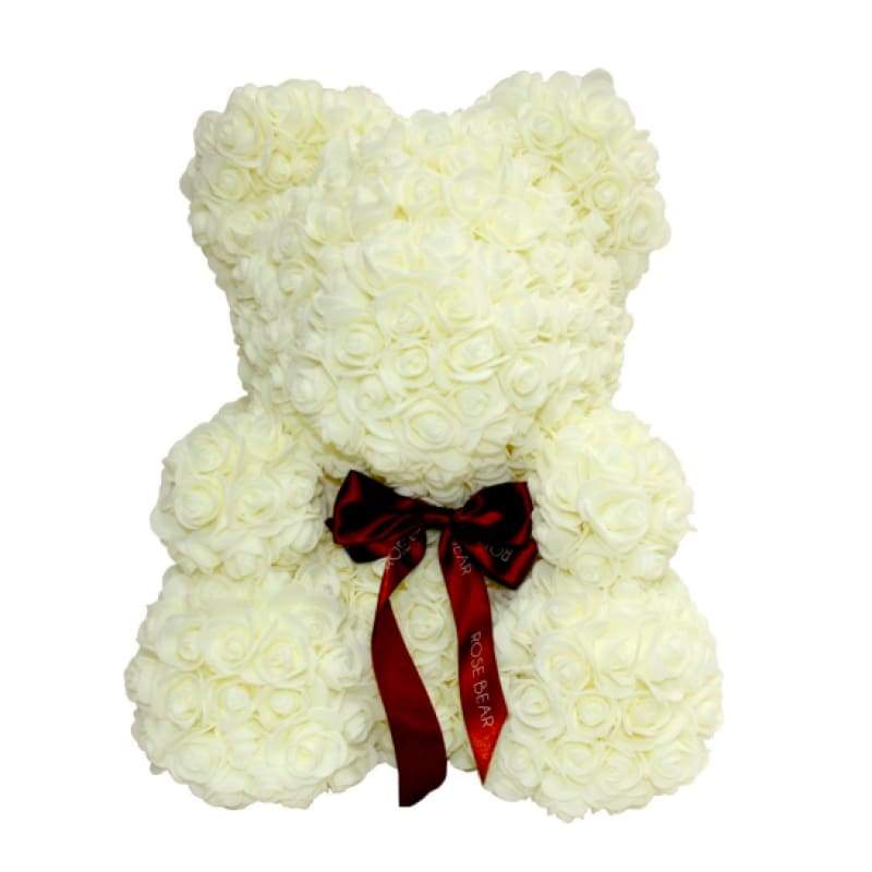 Give the lady you love a gift made of roses 🌹that will last forever! A gorgeous decorative teddy bear made of soft synthetic roses in a romantic red color. The perfect gift that will look great as a decoration piece in your loved one's home or office. Made with roses, these custom-made bears last a lifetime with no care needed! Coming in 14 inches,