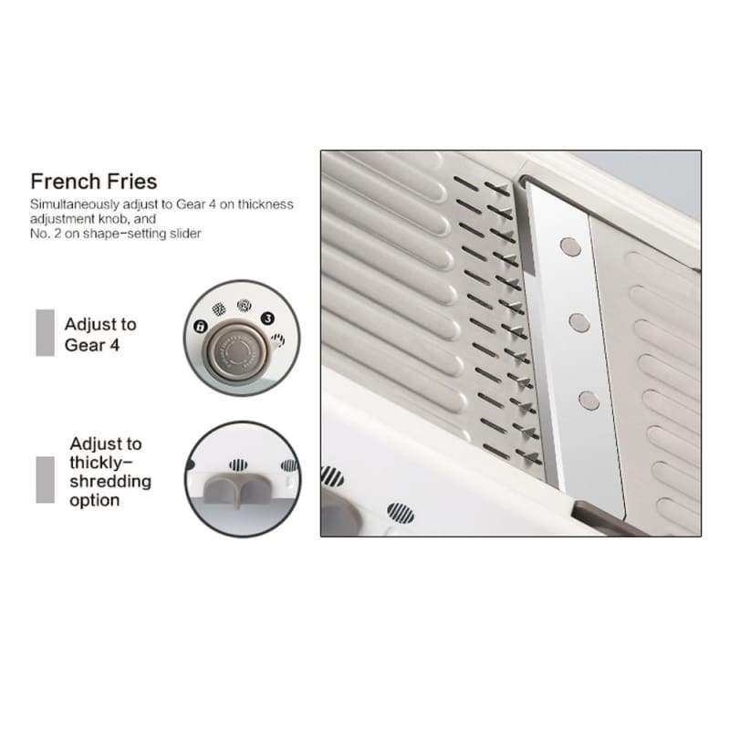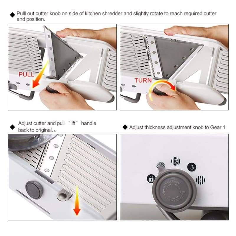 - This slicer includes protective blade covers and a blade storage container for safe storage